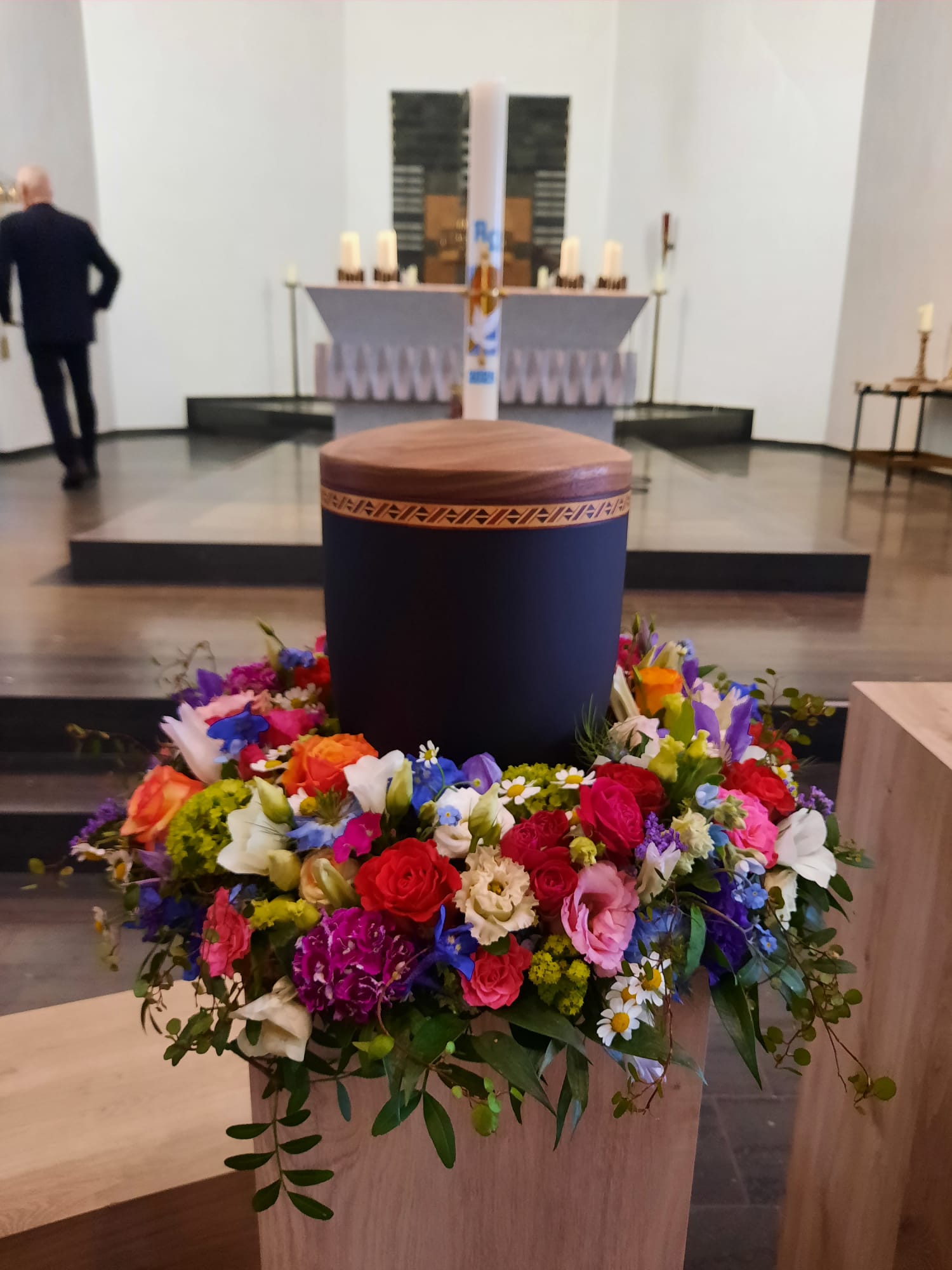 Hübscher und stilvoller Blumenschmuck auf der Trauerfeier oder der Beerdigung kann tröstend wirken. Drücken Sie Ihren Respekt, Ihre Wertschätzung oder Ihre Liebe für den Verstorbenen mit Blumen aus. Nutzen Sie die florale Sprache, um die schönsten Erinnerungen ins Gedächtnis zu rufen. Mit unserem Blumenwissen begleiten wir Sie auf dem Weg und kreieren eine individuelle Trauerfloristik für Ihren Anlass.
