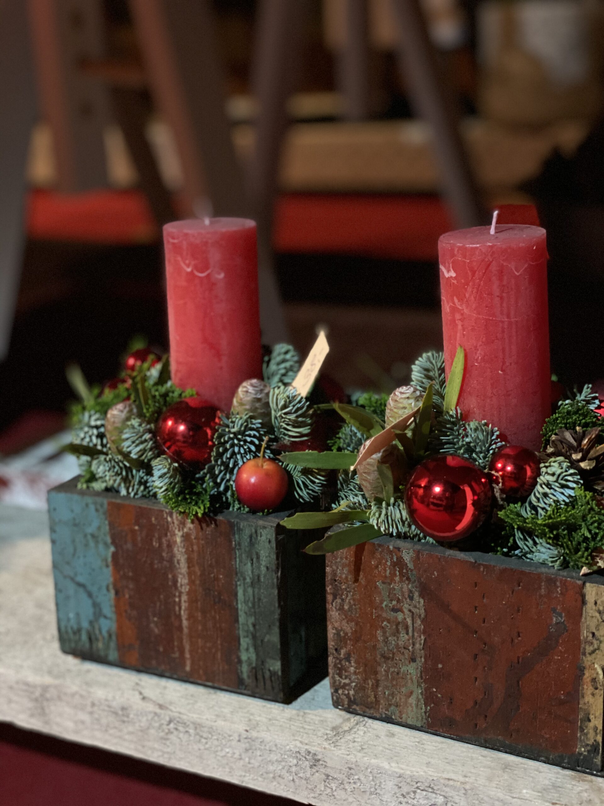 Weihnachtliche Gefäß Füllung mit Stumpenkerze Rot