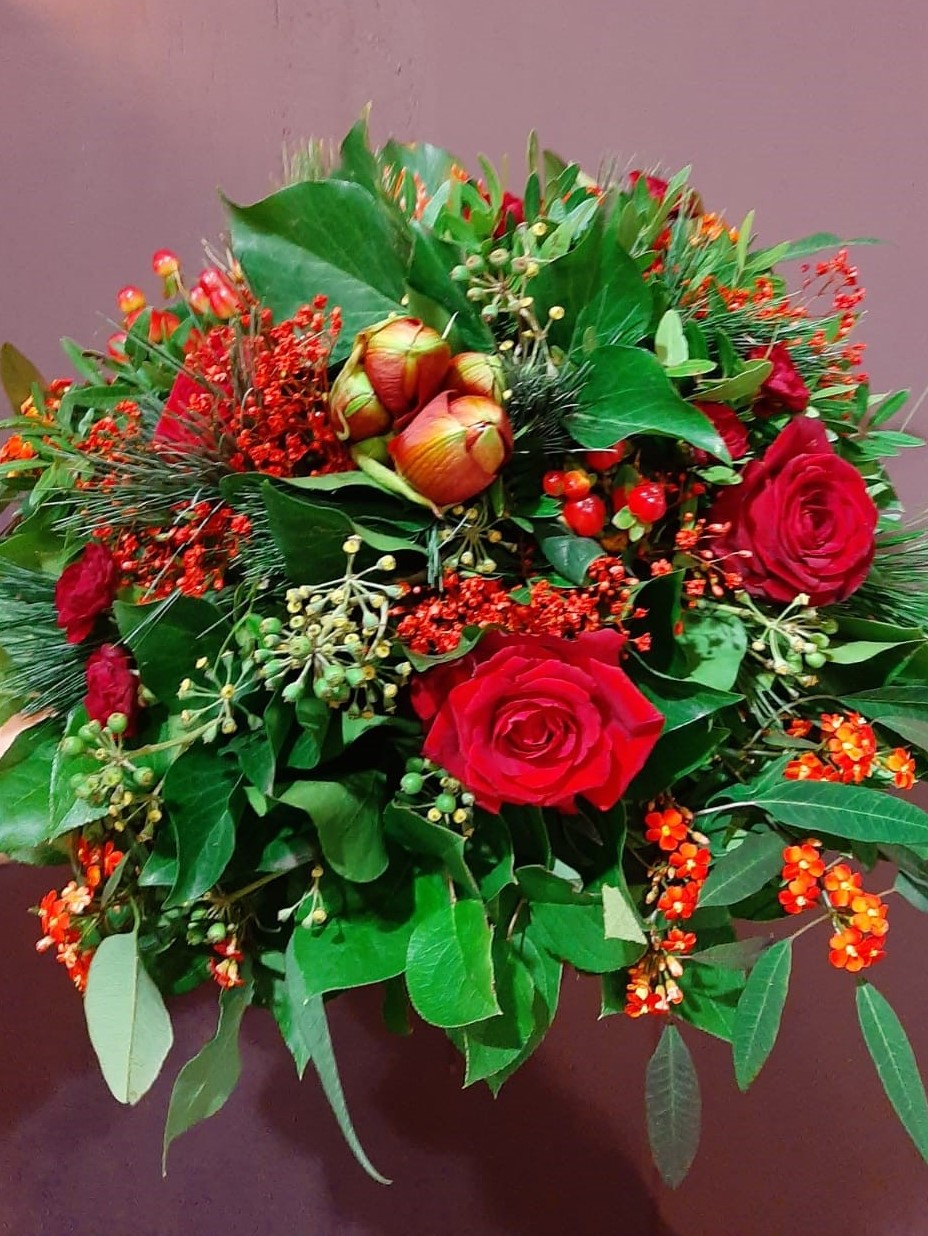 Strauß mit Amaryllis, Rote Blüten und Weihnachtliche Accente